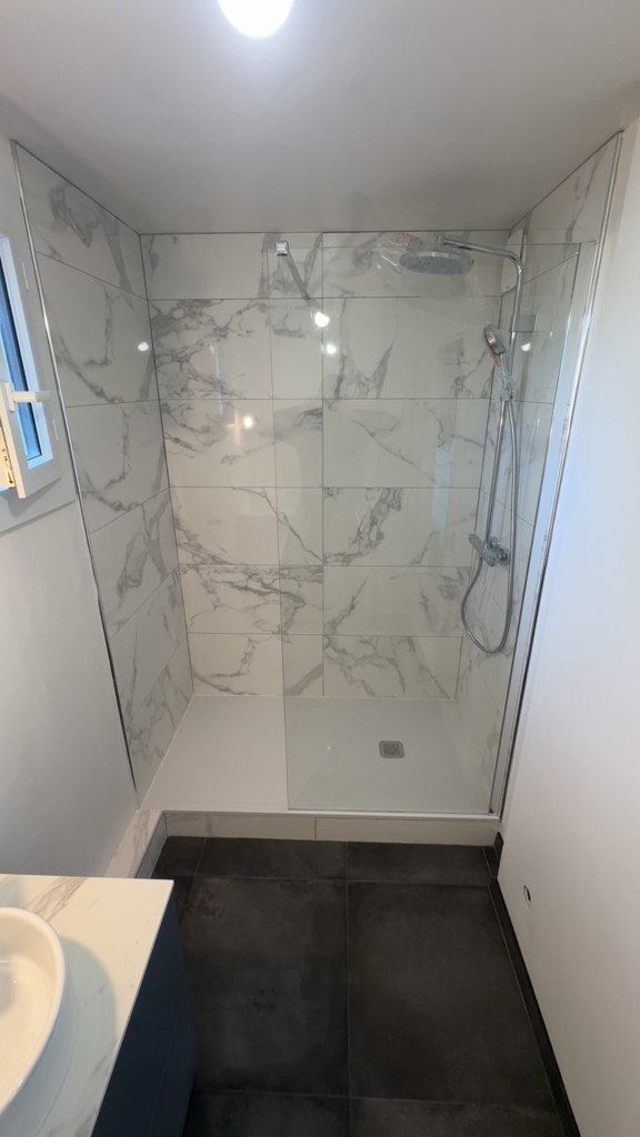 Pour vos pièces d’eau : conception sur mesure et travaux complets (plomberie, électricité, plâtrerie, sols & murs, mobilier, électroménager) pour un résultat esthétique, fonctionnel et durable. ✨